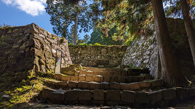 って入る。脇には城内唯一の三重櫓が構えられており、天守の役割を果たしていた。」