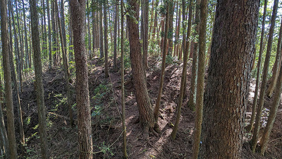 戦国期の城郭の主要部分は残っていないが、近世の整備から外れた山腹の尾根筋には堀切や曲輪が 残っている。周辺の山城の主郭に匹敵する規模の曲輪もあり、規模の大きさがしのばれる。