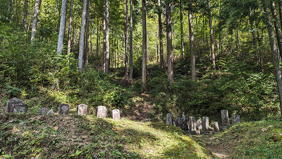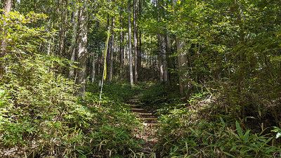 かえでホールの南西200m道沿いに登城口(表示あり)
