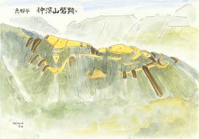 堀切を隔てた西側の曲輪は、周囲に帯曲輪を巡らせ、さらに 1 段低い位置に横堀・堀切とこれに連動する畝状竪堀群が巡る。このうち北西の 1 本は、万ヶ洞の入口を画するように麓近くまで延びる長大な竪堀である。仲深山砦の規模は、 明知城の主郭部分に匹敵し、一段低い位置に帯曲輪や横堀と連動した畝状竪堀群を設ける点も明知城に類似する。