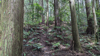 北側の林道野志吉良見線沿いに入口(表示あり) 大船集落からの登山道もある