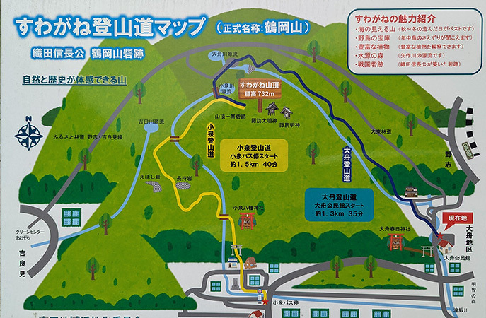 【大舟公民館からスタート、諏訪ヶ根砦→小泉バス亭→大船公民館に到着 約1時間30分】