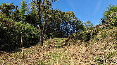 この丘も頂部が削平されて畑となっており、さらに西に続く丘陵との間は堀切状の谷によって画されている。