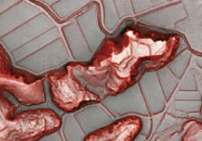 城の西側には、向山と呼ばれる小丘があり、細い尾根により連結している。