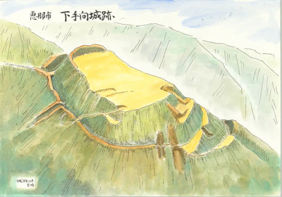 土岐坂(山岡から小里・神箆に向かう山越えの道)の登り口を押さえる尾根に立地する。