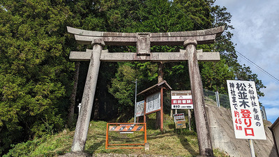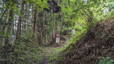 JAひがしみの上村支店横の大船神社参道(表示あり)が登城口