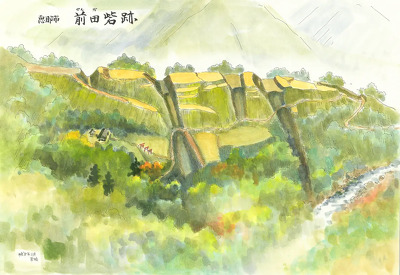 特筆されるのは中央を区画する2本の堀切で、どちらも幅約20m、深さ約8mの箱堀で、両端は竪堀となって南北の斜面に落ちている。竪堀も合わせた延長は100m以上あり、尾根を完全に分断している。このような規模の大きな堀切・整堀は、東美濃では他に類例がなく、城そのものも有数の規模である。前田砦は、武田領と岩村城をつなぐことを目的として、武田によって築城もしくは改修を受けた可能性が高い。